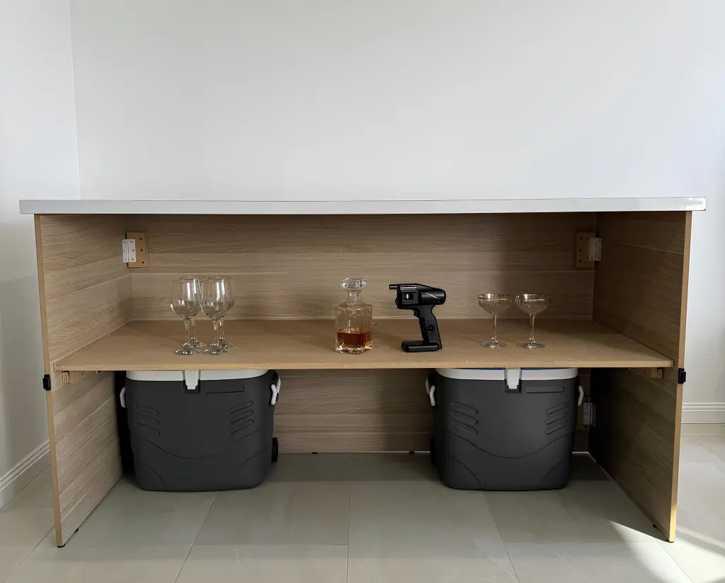 Our uniquely crafted mobile bar combines style with functionality, featuring easy assembly and swift deployment.